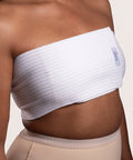- Cuenta con cierres ajustables de marca VELCRO® que permiten el posicionamiento personalizado de la banda y la compresión en cualquiera de los senos.