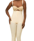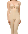 Ideal for Stage 1 recovery (0–2 weeks post-op), this below-the-knee bodysuit features a front hook & eye closure, open crotch, and adjustable shoulder straps for a secure, customized fit. Pre-formed closed buttocks offer a natural lift, while the high-compression midsection smooths the tummy—no padding required.