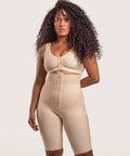 Designed for Stage 1 recovery (0–2 weeks post-op), this girdle features a front padded zipper, open crotch, and non-roll 3" elastic waist. Pre-formed closed buttocks provide a natural lift, while firm tummy compression creates a smooth, sculpted shape—no padding needed.